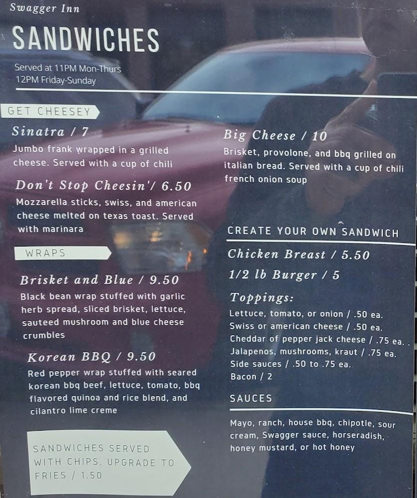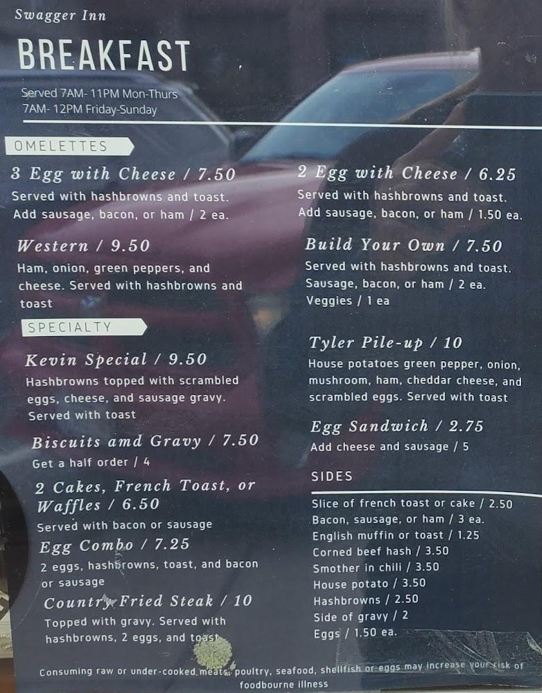 Swagger Inn’s menu caters to diverse tastes. Breakfast options include filling omelets and pancakes, perfect for any early bird. For lunch or dinner, dishes such as the chili skillet and crispy chicken wings shine. Pizzas offer great customization with choices like meat lovers and veggie.
